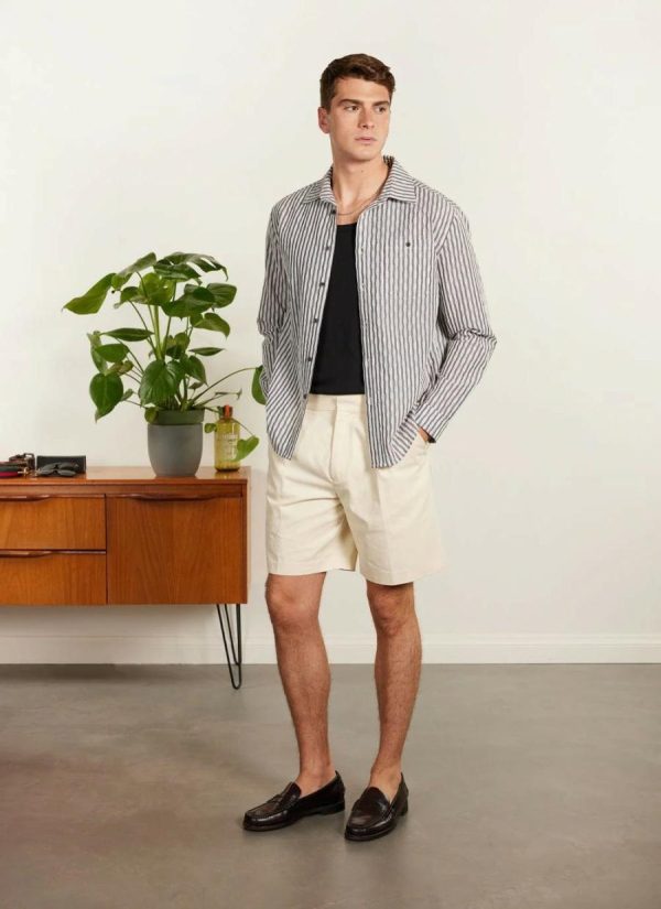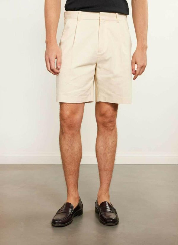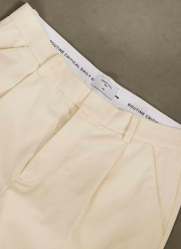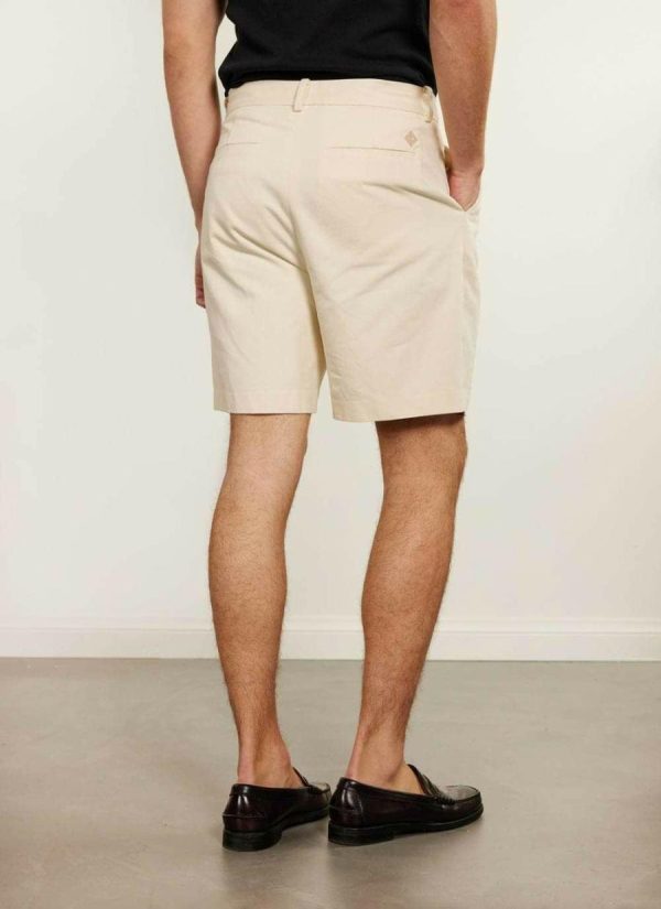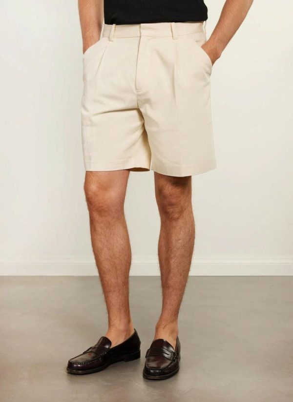 - Features: These cream tailored shorts are perfect for everyday wear, featuring starch spray to keep them looking fresh. They come with a zip fly, hook and bar closure, welt pocket at the back, and slanted pockets at the front, ensuring both style and practicality.