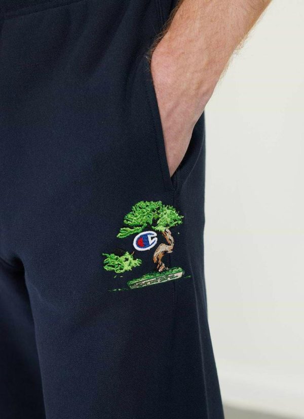 - Features: Men’s straight leg joggers with bonsai tree and champion embroidery. Made from a 400 gsm reverse weave premium fleece, these navy track pants are ideal for cooler weather.