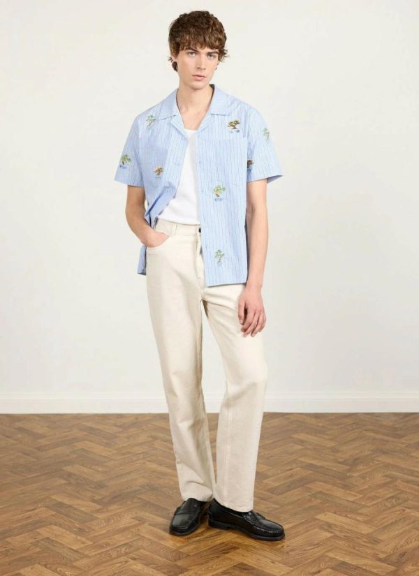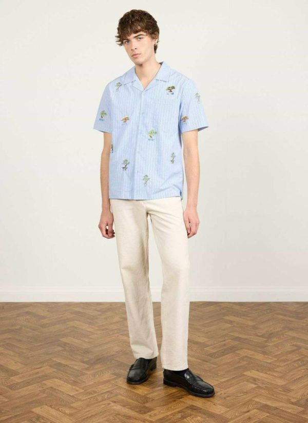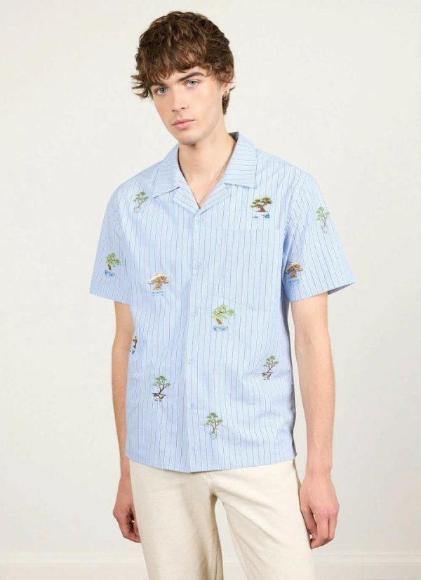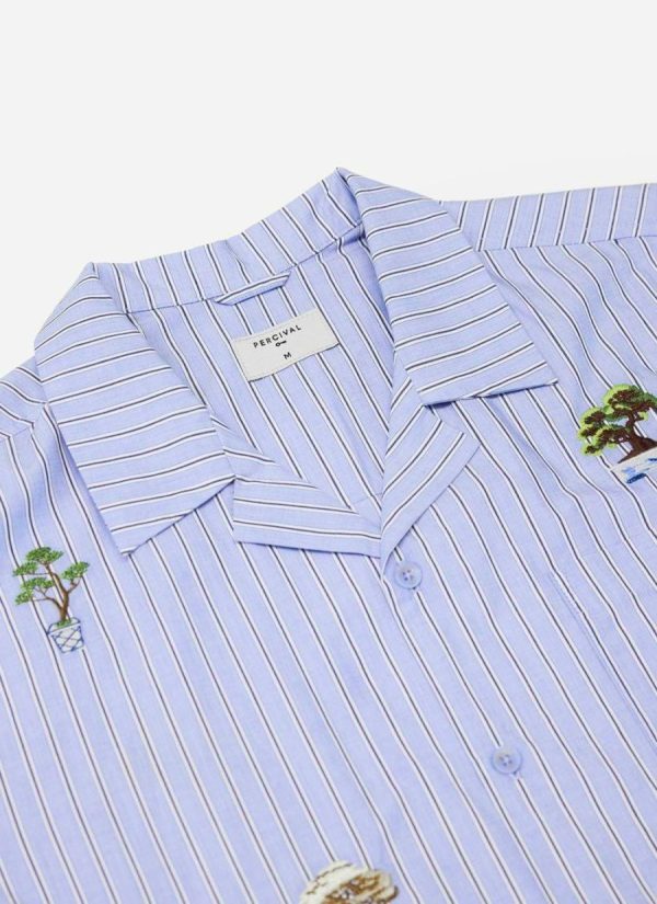 Men Bonsai Stripe Cuban Shirt | Cotton | Blue | Percival Cuban Collared Shirts