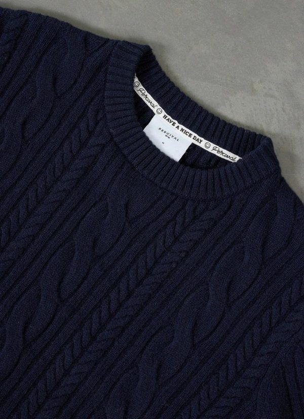 - Features: Men’s cable knit jumper in an oversized fit. With a heavy gauge cable knit, this blue knitted jumper is ideal for layering in the colder fit.