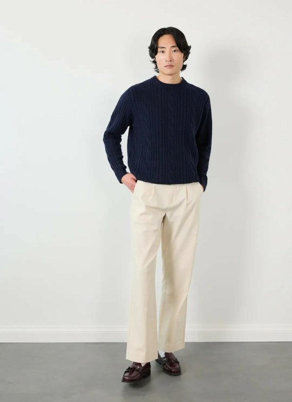 High wool blend men’s cable knit jumper, comfortable. Day in and out, knit of the season, part of any self respecting persons wardrobe.