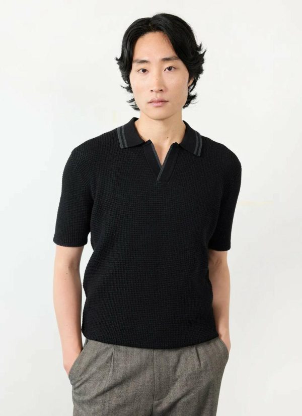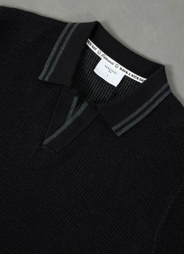 Men Cassette Knitted Polo | Cotton | Black | Percival Polo Shirts