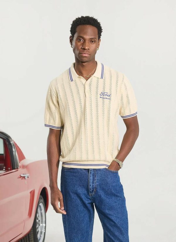 Men Dealership Knitted Polo | Percival X Ford | Ecru | Percival Polo Shirts
