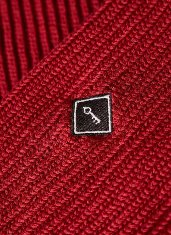- Features: Men’s red sweater made from a 100% organic cotton. With a chunky knit ribbing construction, this crew neck jumper is ideal for layering in the Autumn and Winter, and is a wardrobe staple for every guy.