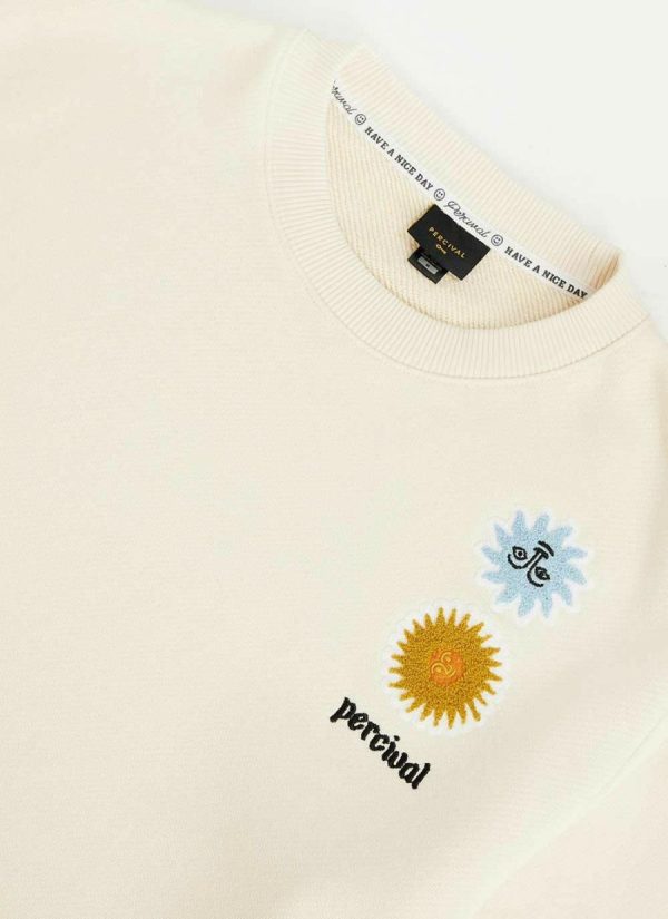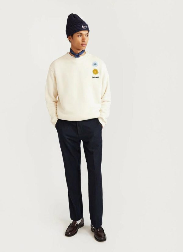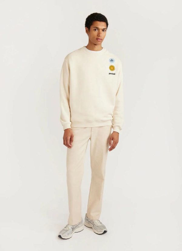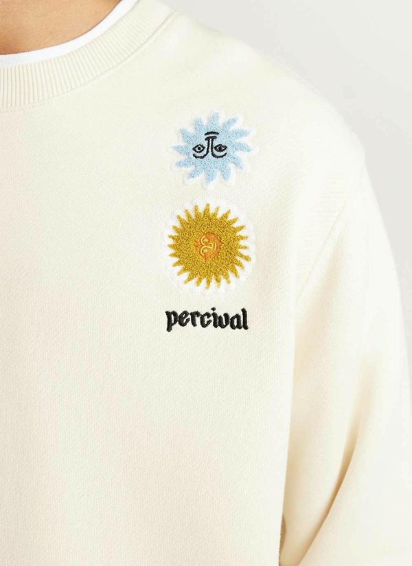 Men Lunar Omen Sweatshirt | Embroidered Organic Cotton | Ecru | Percival Sweatshirts