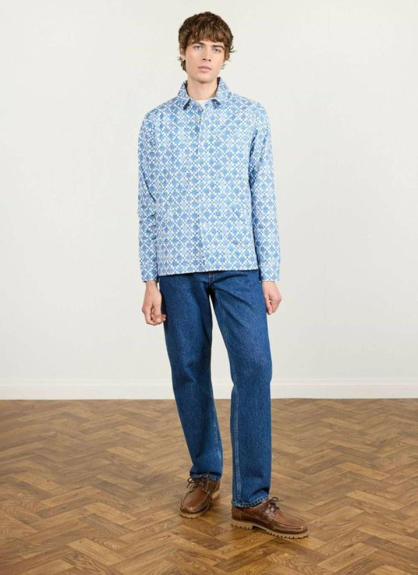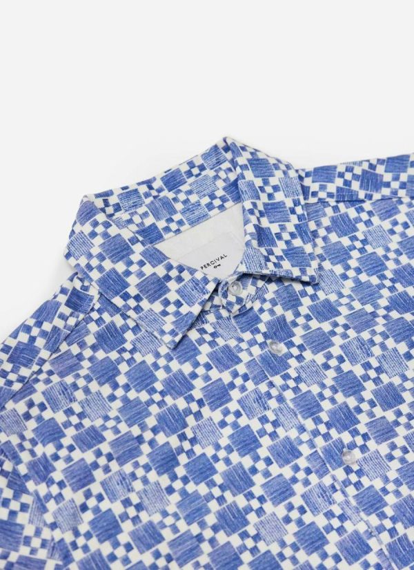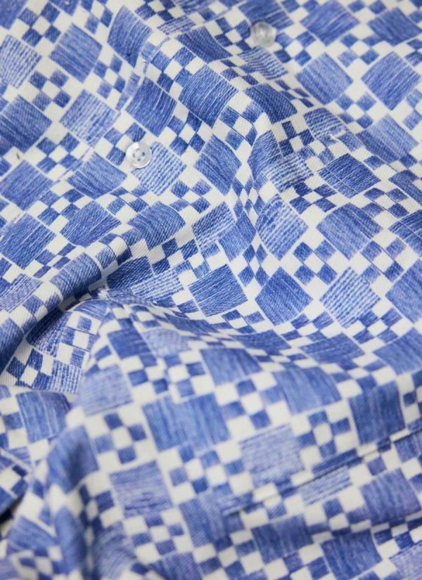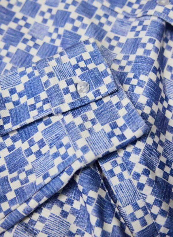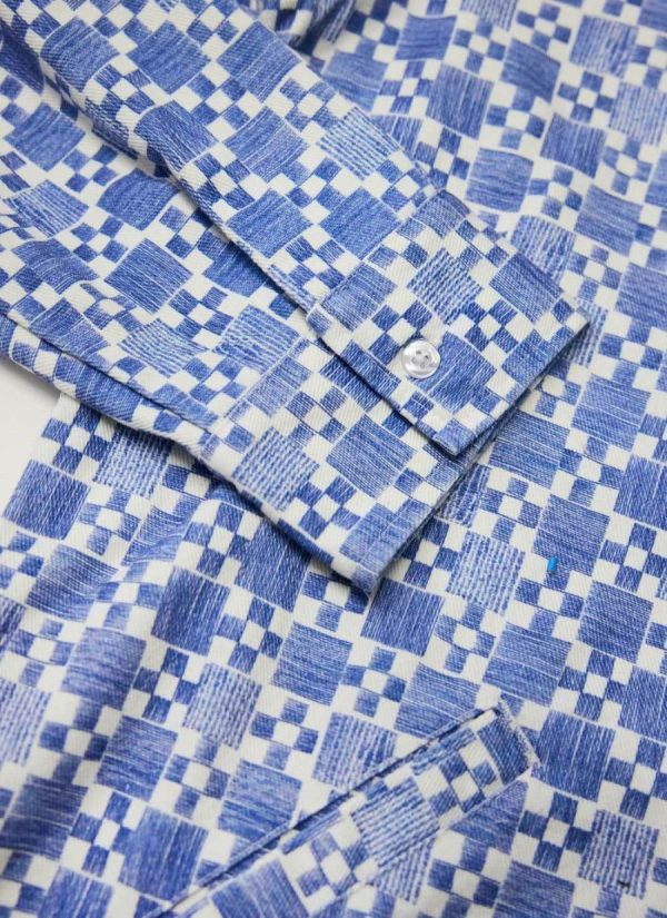 - Features: Men’s geometric print shirt made from 100% cotton. Finished with a classic collar and engraved tonal branded buttons, this blue long sleeve shirt is ideal for casual and smart-casual occasions.