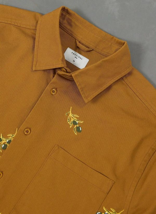 Percival Spring Summer 2025, full flavour, full Perci pomodoro, the sauce of good fits. Feast your eyes, vibrant colours, rich silhouettes, all wrapped up for lucky customers. Olive overshirt, all over olive embroidered shirt, oh how I love me olives, even the brine.