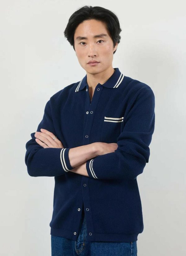 - Features: The Long Sleeve Polo Shirt in Navy is made from 100% Cotton. This smart casual shirt features a breast pocket, ribbed texture and seamless metal buttons down the centre. As worn by Tom Holland, the Pablo Cotton Knitted Shirt is a wardrobe staple that every guy should own and can be worn all year round.