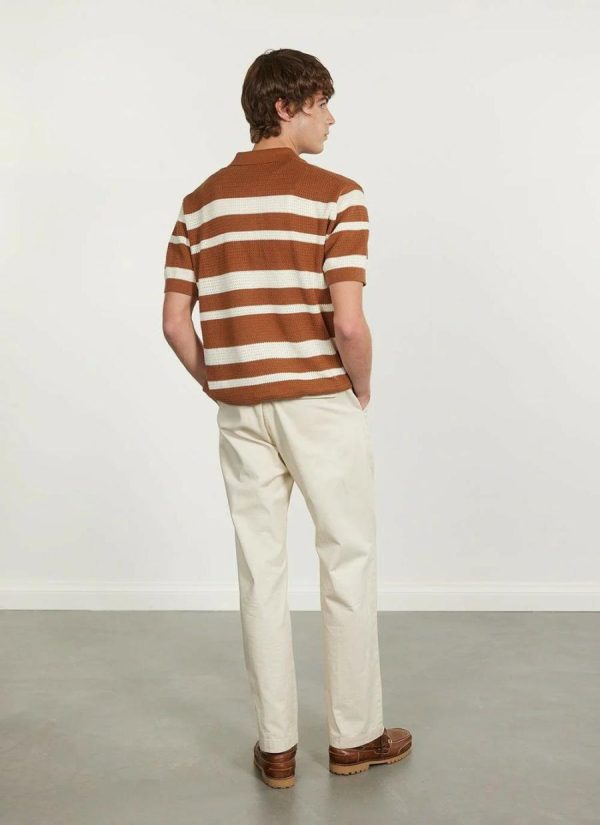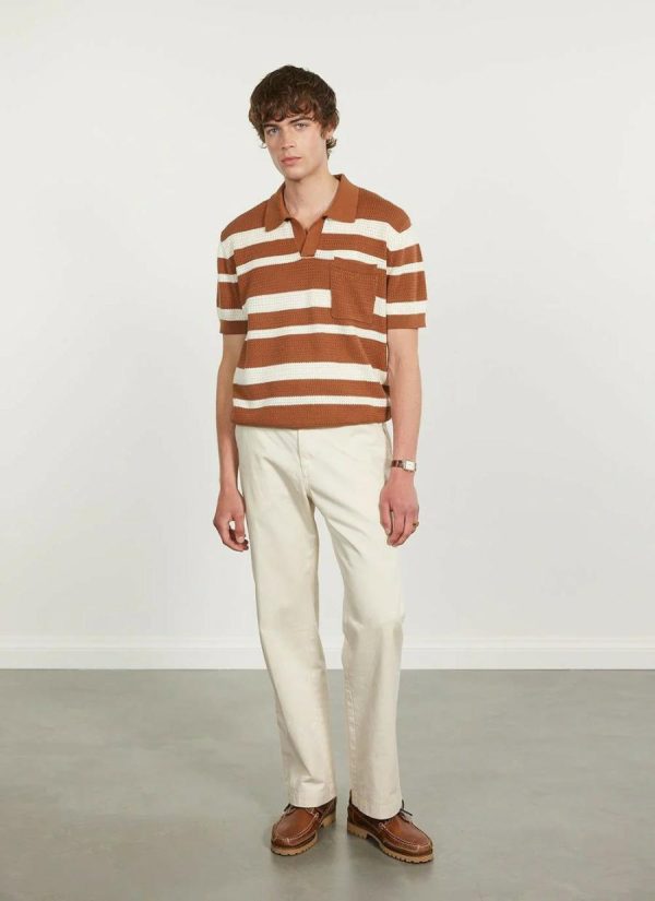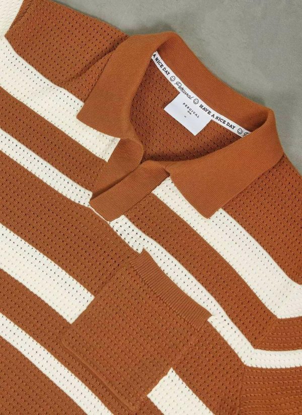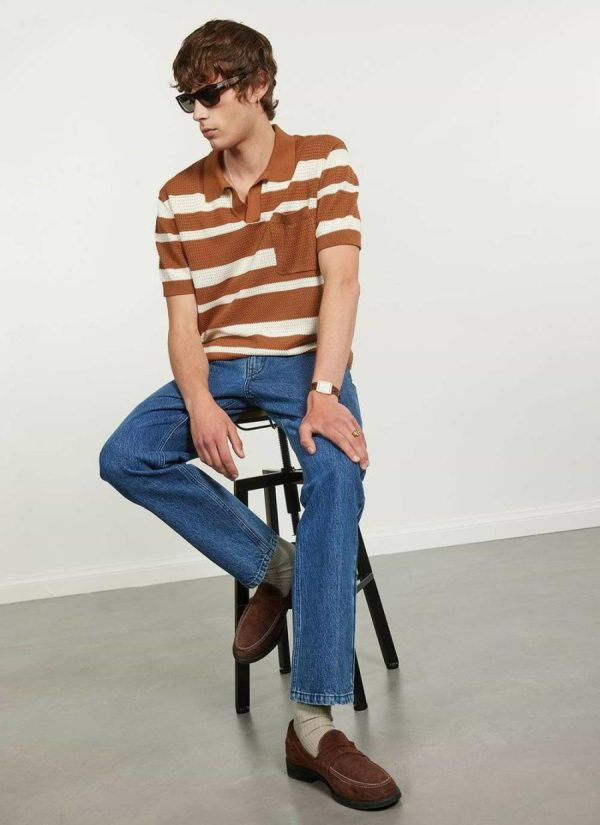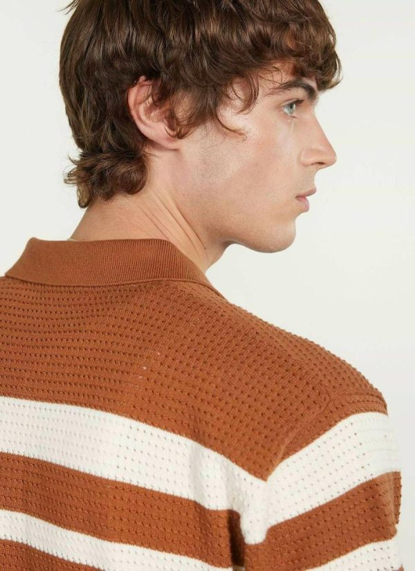 - Features: Men’s polo shirt in a crochet-style design. In a classic looser fit and with a chest pocket, this brown polo shirt is ideal for the warmer months.