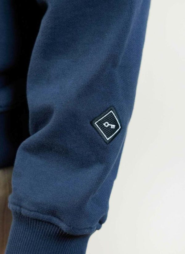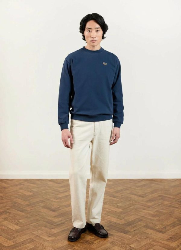- Features: Men’s heavyweight sweatshirt crafted from 100% BCI organic cotton, designed for everyday wear. This navy sweatshirt features a chain stitch embroidered chest design and includes heavyweight ribbing at the hem and cuffs for durability and comfort. With its classic, slightly boxy fit, this 450gsm piece ensures a stylish and relaxed look.