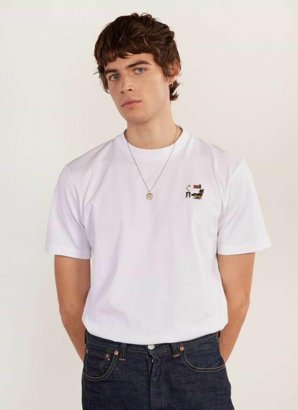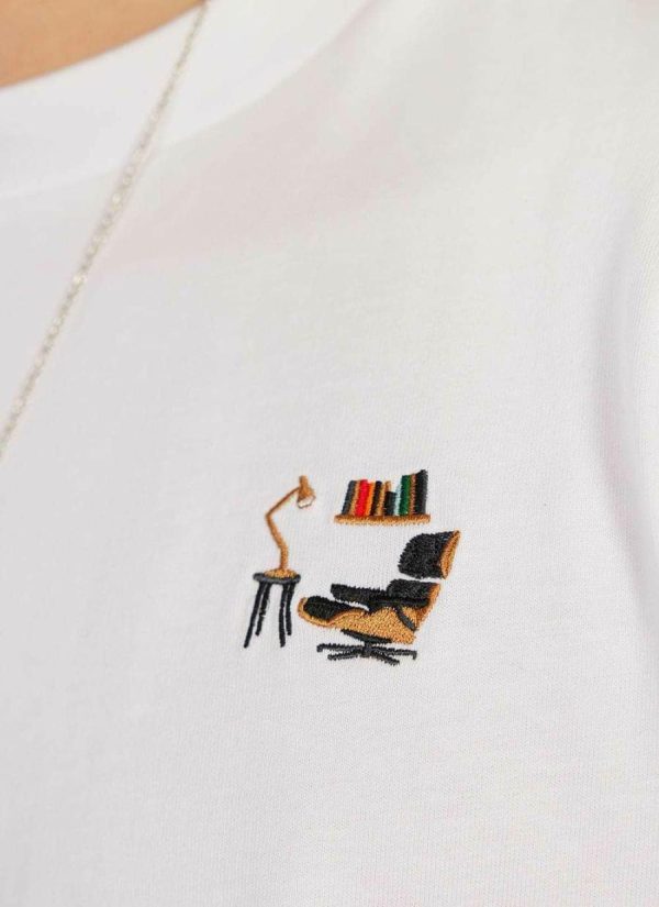 Men Reading Chair Auxiliary T Shirt | Embroidered Organic Cotton | White | Percival T-Shirt & Hoodie Bundle Deal