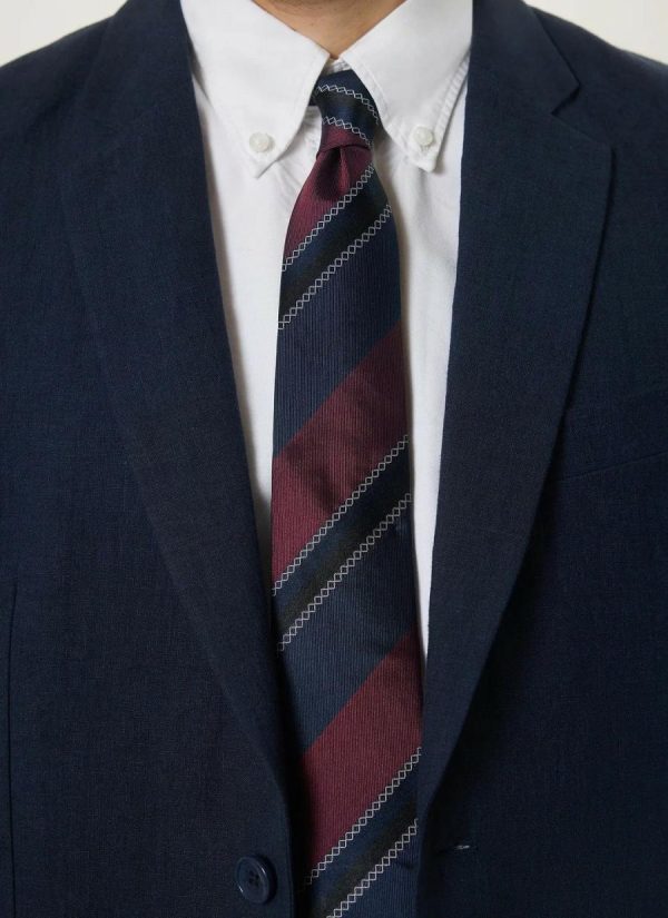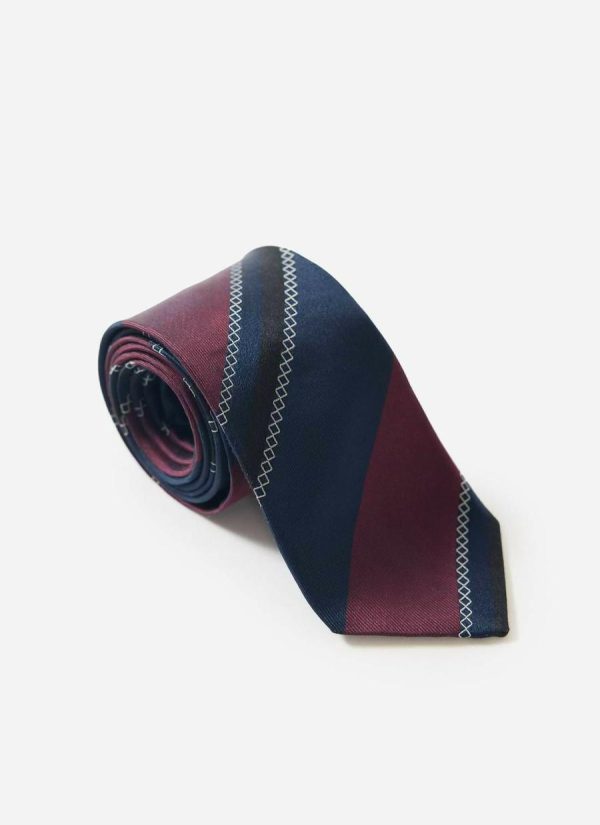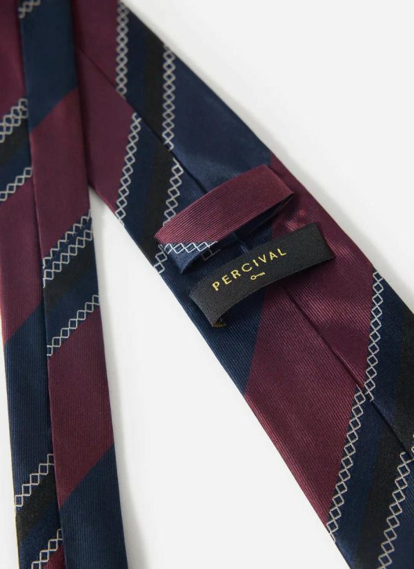 Men Stripe Cross Stitch Tie | Silk | Burgundy | Percival Ties