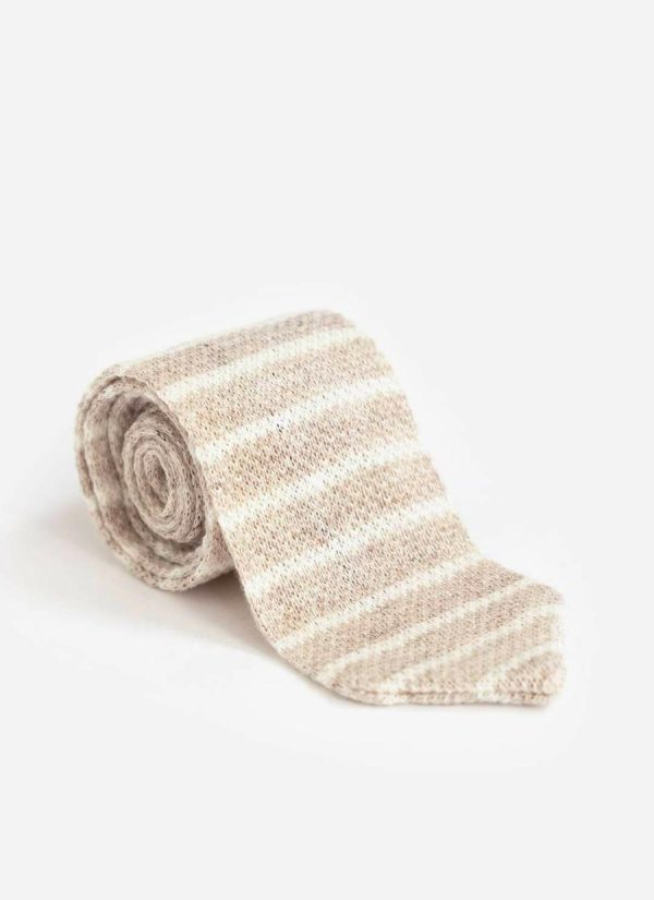 Men Stripe Linen Tie | Natural Marl | Percival Ties