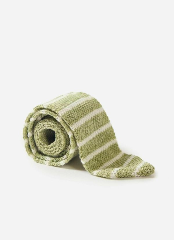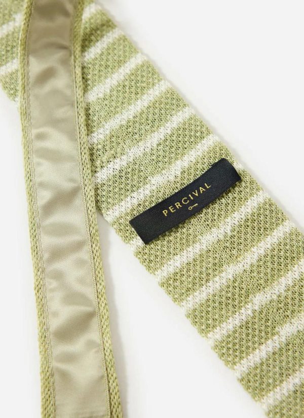 Men Stripe Linen Tie | Sage Marl | Percival Ties