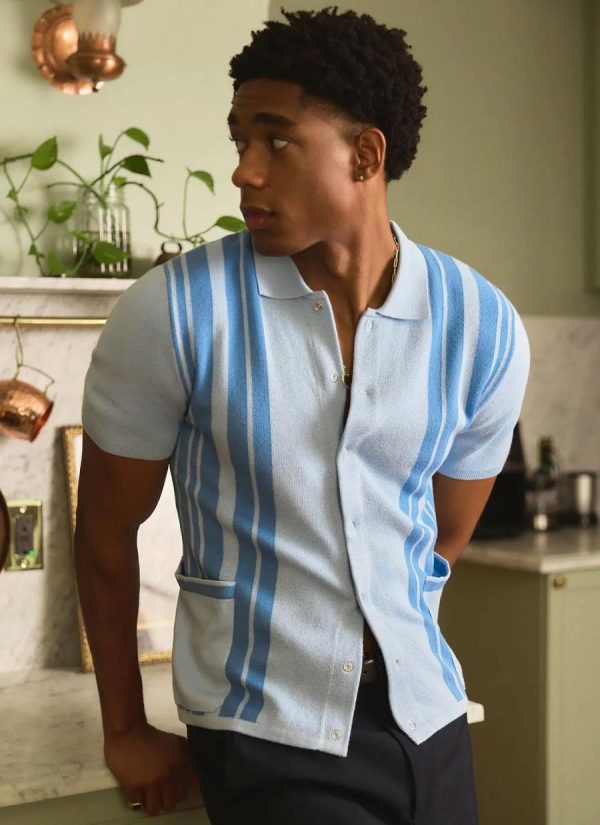 - Features: Men’s knitted shirt with short sleeves and side pockets. Featuring silver snap popper fastenings and in a standard fit, this Knit Shirt is an all-year wardrobe staple.