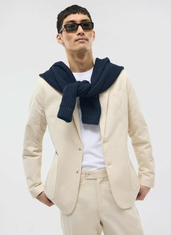 Men Tailored Seersucker Blazer | Cream | Percival Seersucker Suits
