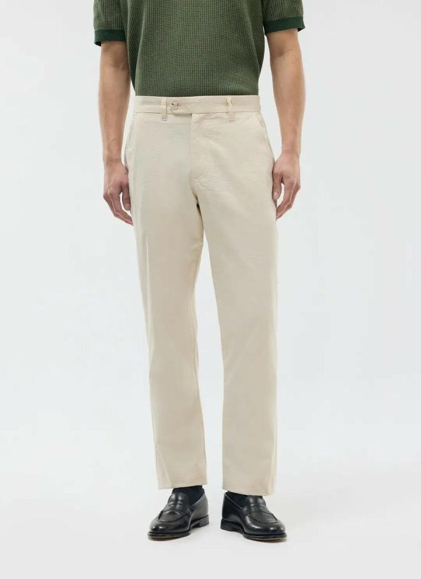- Features: Men’s Tailored Trousers made from durable Seersucker Cotton, with a straight leg shape and tailored details. These Seersucker Trousers features include a zip fly, back welt pockets, fixed waistband and belt loops, perfect for wearing with a belt. Ideal for weddings and smart dressing, these Tailored Straight Leg Suit Trousers should be in every man’s wardrobe, the 4.5cm invisible hem turn up depth allows for leg length alteration for personal preference.