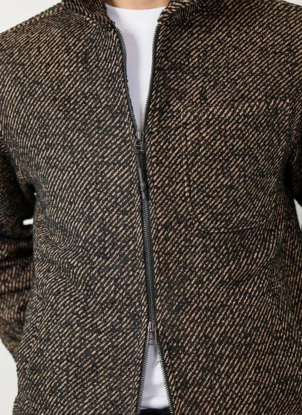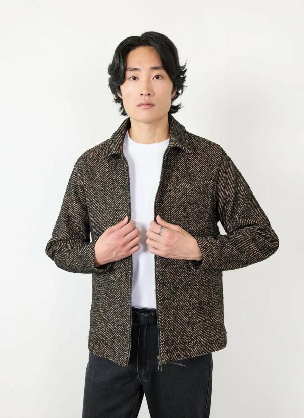 Oh me oh my oh nice new men’s jacket mate, look at this visual twill delight. In the colours of the season, lovely espresso tan, a deep luxury delight, blended with my favourite colour, black. Zip up, look smart, hem cut at the hip, hip too with a co-ord trouser option available. Perfect for those mid days.